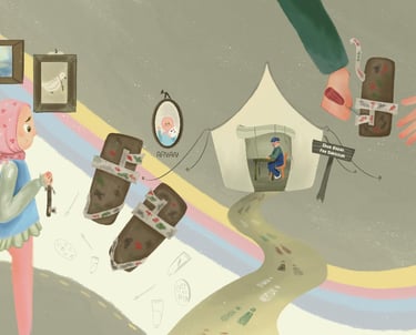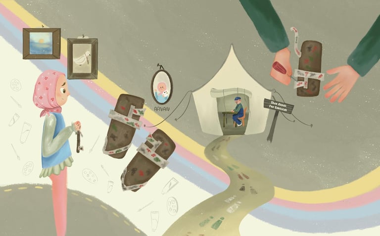 We were introduced to Afnan through Taqat Careers, an initiative that connects talented freelancers in Gaza with organizations around the world. Through this platform, her work has reached international audiences, including Kuwait and France, opening doors to meaningful creative collaborations. We worked together with Afnan to tell the story of "Shoes of Resilience" based on a proverb she grew up hearing.
