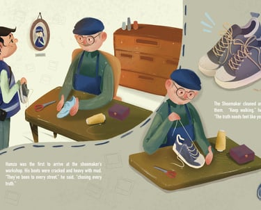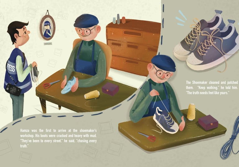 A Palestinian story in collaboration with an artist based in Gaza, we examined the Arab proverb, "If you want to know someone's story, look at their shoes," and created a story that shows the essence of resilience.